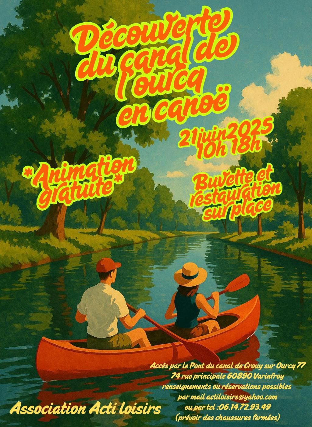 Partez à la découverte du Canal de l’Ourcq… en canoë ! Rendez-vous le Samedi 21 juin 2025 au Pont du Canal de Crouy-sur-Ourcq pour une journée nature et détente !