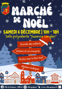 Rendez-vous le dimanche 30 novembre à la Salle Polyvalente (Rue Fournier) pour le Marché de Noël, de 10h à 18h. Vous y trouverez des idées cadeaux et pourrez vous restaurer sur place.