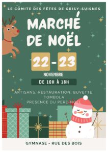 Venez profiter du marché de Noël de Grisy-Suisnes avec restauration, buvette et tombola. Le Père Noël sera également présent sur place...