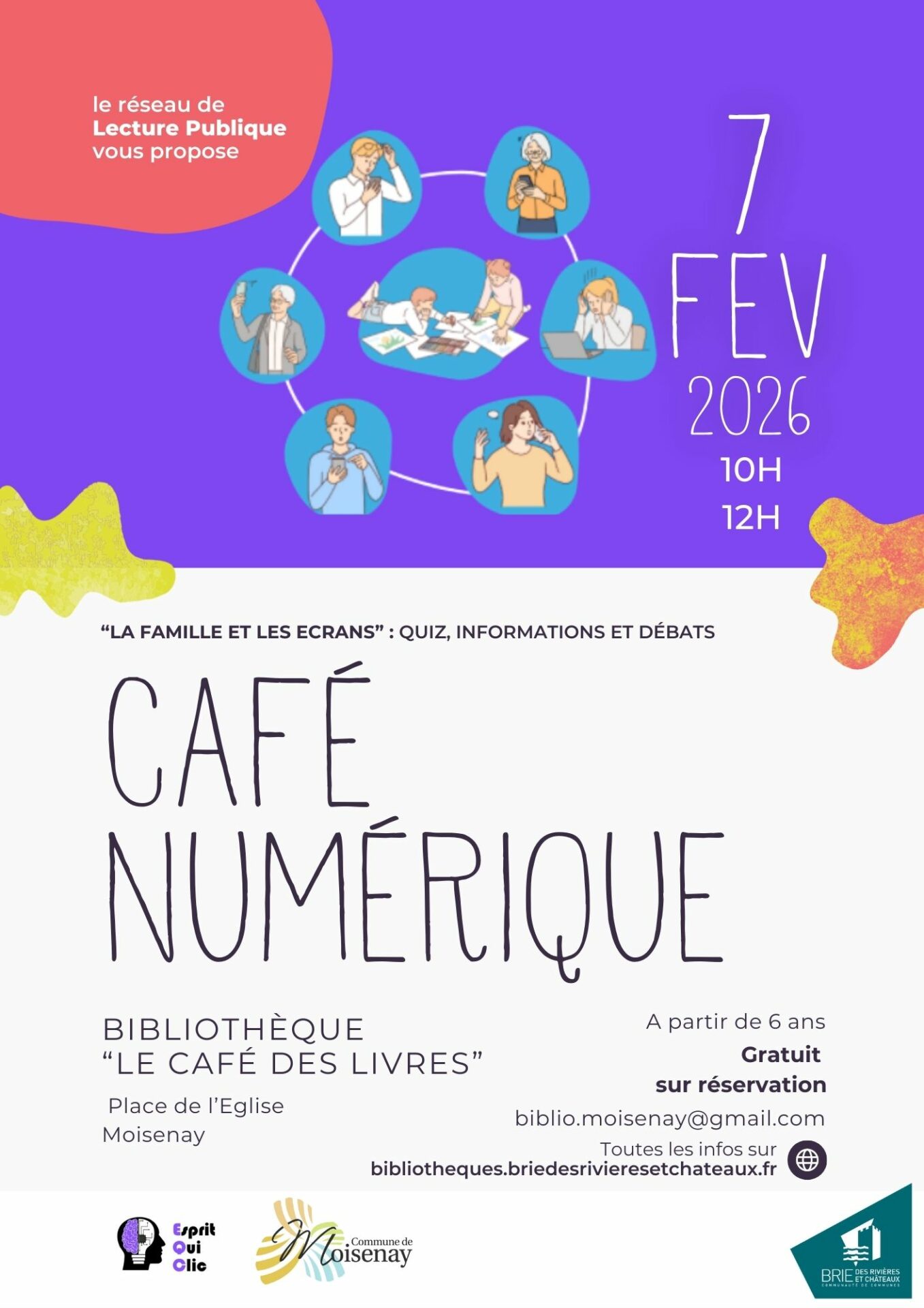 La bibliothèque de Moisenay vous propose une sensibilisation à l’usage des écrans en famille, une séance animée par l’association Esprit qui clic, et qui prendra la forme d’un quiz. Une manière ludique d’apprendre !
