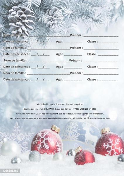 Saint-Nicolas organisé par le Comité des Fêtes le 6 décembre 2025, à la salle des fêtes Marius-Albert. Cet événement est réservé uniquement aux enfants de Valence-en-Brie.