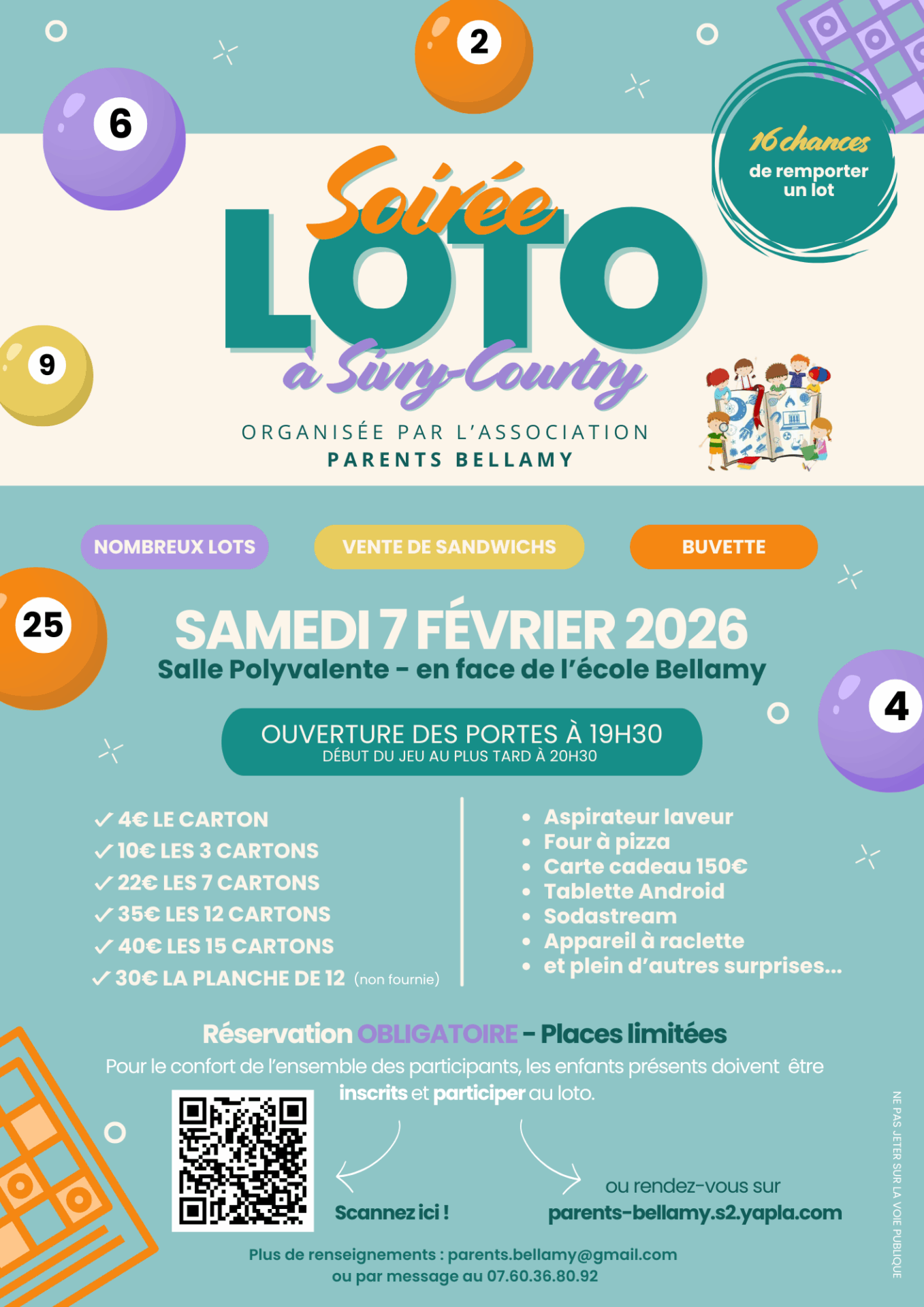 Pour le confort de l’ensemble des participants, les enfants présents doivent être inscrits et participer au loto.
