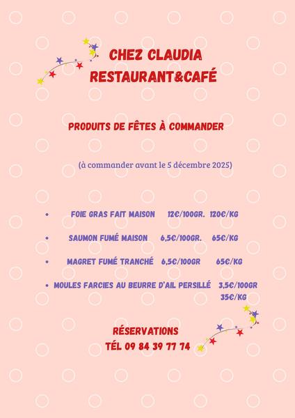 Claudia vous attends pour savourer un menu d’exception spécialement conçu pour ce réveillon de Nouvel An 2025. Réservation obligatoire.